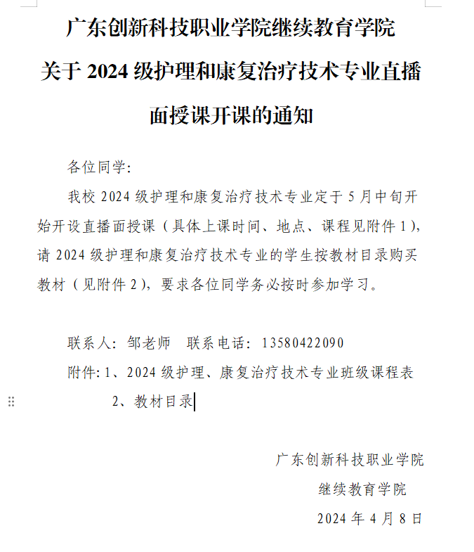 星空app官方版下载安装最新版本星空安卓版下载学院 关于2024级护理和康复治疗技术专业直播面授课开课的通知